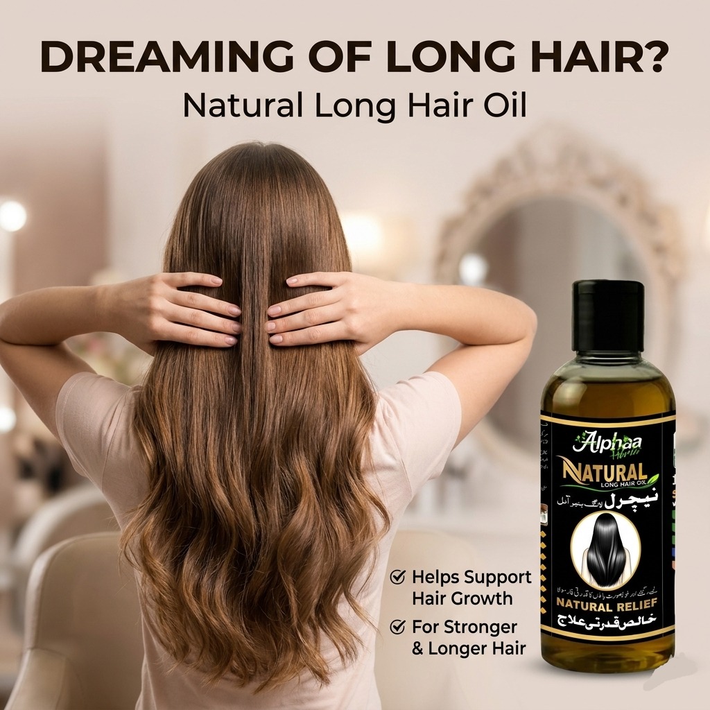 🌿 الفا لمبے بال ہربل آئل — لمبے، گھنے اور ریشمی بالوں کا قدرتی راز